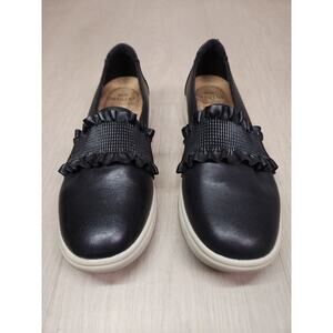 Step into everyday comfort with these Earth Origins Ellis slip-on flats in classic black. Designed with a soft cushioned insole, flexible outsole, and a stylish ruffle accent across the top. Easy to wear, lightweight, and perfect for work, casual outings, or travel.