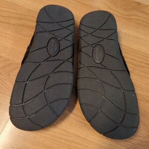 The Earth Origins Essential Ellery Clog Mules Slip On Shoes in black are a comfortable and versatile option for women. Featuring a round toe shape, slip-on closure, and low heel height, these shoes are perfect for casual or workwear occasions. Made with a lightweight and padded design, they offer comfort throughout the day. The suede upper material and rubber outsole provide durability and style, making them suitable for various seasons. With a solid black color and a low-top shoe shaft style, these Earth shoes combine practicality with a modern aesthetic, ideal for everyday wear.