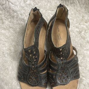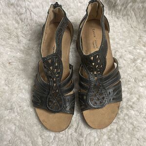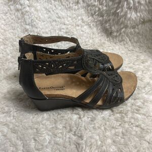 Earth Origins Kingsley leather Black cut out ankle strap wedge sandals size7M