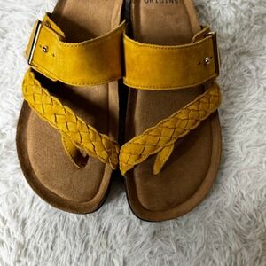 Earth Origins Onida Amber Yellow Nubuck Braided Thong Sandals Size 8