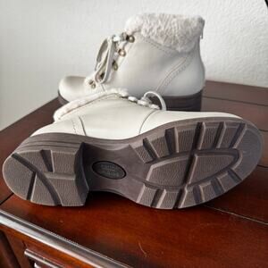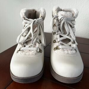 EUC Off white ankle booties. Have a zip up back with laces front. Lined with faux fur for extra warmth and style. Please refer to photos for additional details. Smoke free home.