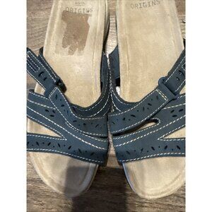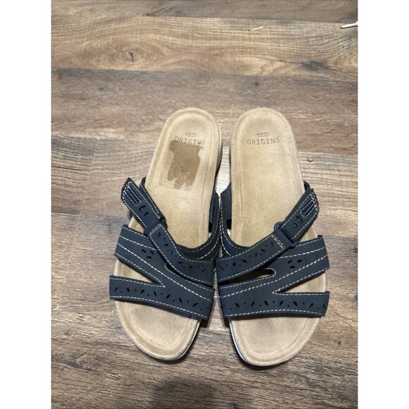 Earth Origins Sandra Sandals Womens Navy Blue Vegan Slide Shoes Size 8 Comfort