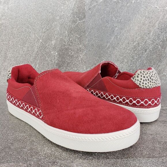Earth Origins Shoes Womens 7 W Red Suede Slip-Ons Zandel Casual Comfort