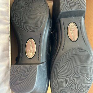 Leather Uppers, Cushioned footbed.