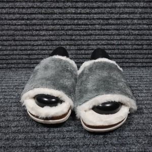 Earth Origins Slipper Womens 6 Olli Frost Grey Faux Fur Slide Soft Comfort Fluff