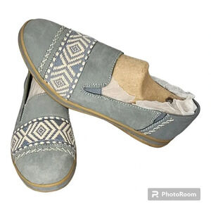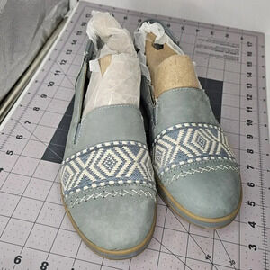 Earth Origins Steel Blue Embroidered Nubuck Slip-Ons Bailey Flats Shoes Size 10