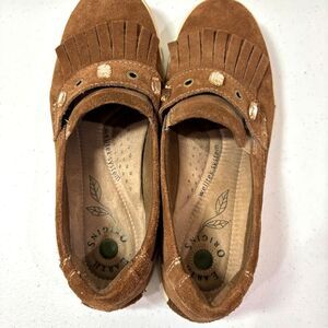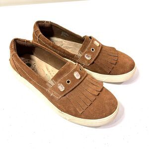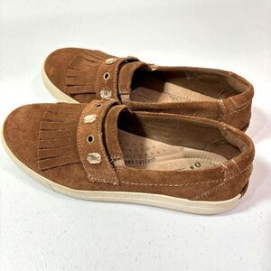 Earth Origins Suede Loafers Mocassins Womens 7.5 Camel Brown Fringe Slip On