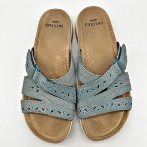 Earth Origins Suede Savoy Shantel Moroccan Blue Comfort Slide Sandals Women 7.5M