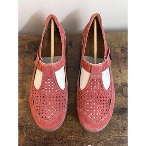 Earth Origins Swirl Pink Suede Mary Jane Shoe Hook & Loop Strap Women's US 9