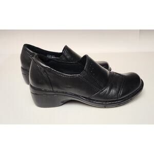 Earth Origins Victoria Black Leather Clog Heel Loafers 2013F Women's Size 8M
