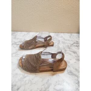 Earth Origins Women's Brown Leather Open Toe Narrow Hadley Slingback Sandal Size 7.5