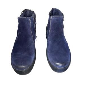 Earth Origins Womens Size 8W Leather Fabric Buckle Side Zip Blue Suede Bootie