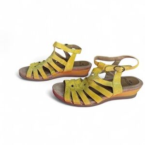 Step into comfort and style with these super comfortable, vibrant yellow, soft leather sandals from Earth Origins. Perfect for sunny days, these sandals offer both elegance and support.