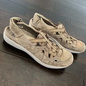 The Earth Origins Skye Sid is the perfect hybrid of a summer casual shoe and sport sandal! The Skye Sid has a covered toe, cut outs in the suede and fabric upper giving your feet breathability and has an adjustable backstrap making them easy to get on and off. These shoes also have great support and a padded insole for extra cushioning.