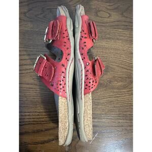 Step into sunny days with these Earth Sand Antigua slide sandals! The bright red leather and perforated design add a touch of boho flair to any outfit. These sandals aren't just stylish; they're also designed for comfort. Treat your feet to the ultimate in comfort and style!