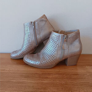 Earth Pineberry Metallic Silver Leather Ankle Boots