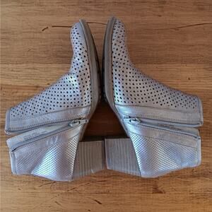 Earth Pineberry Metallic Womens Silver Leather Ankle Booties Boots