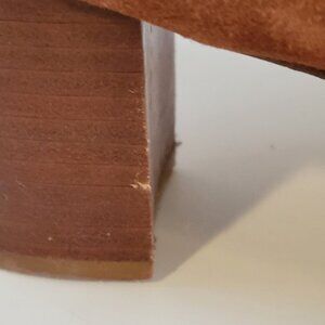 The stacked leather heels have a couple of nicks along the inside edges. There are a couple of black marks which I have made no attempt to clean. Photos are an important part of the description.