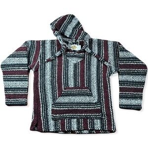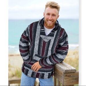 Popular Earth Ragz environmentally friendly Iguana Jack pullover with burgundy and grey stitching, hood, and front kangaroo pocket. No notable signs of wear. Baha hoodies are made of 100% recycled fibers, soft on the interior, and made to last!