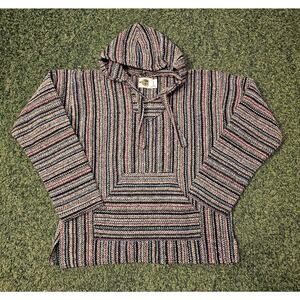 Earth Ragz Mexican Drug Rug Hoodie Mens M Baja Hippie Pullover Colorful Pride