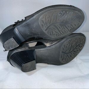 Earth Retro Looking Black Metallic Leather Booties Size 7. Super cute. Earth brand shoes are famous for their comfort. Great Condition see photos. A couple Knicks on one heel but can be touched up with a black marker.