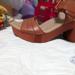 Cute new leather sandles with wood heel.