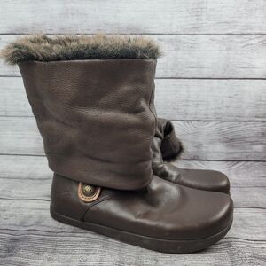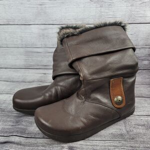 Earth Shannon Boots Womens Sz 8.5B Brown Leather Mahogany Faux Fur Lined Winter