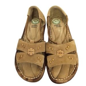 Earth Shoe Gelron 2000 Brown Suede Leather Slip On Sandals Size 6W