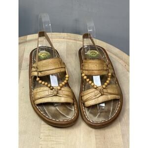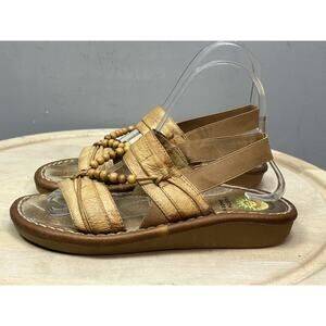 Earth Shoe Sandals Womens Size 8 Tan Leather Gelron 2000 Beaded Comfort Casual