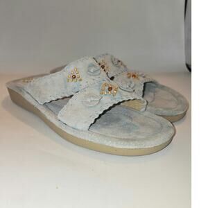 Earth Shoes Sandals Women's 8.5 Blue Suede Conway Slides Gelron 2000 Beaded read