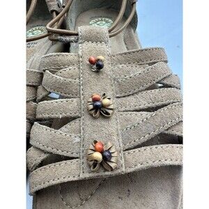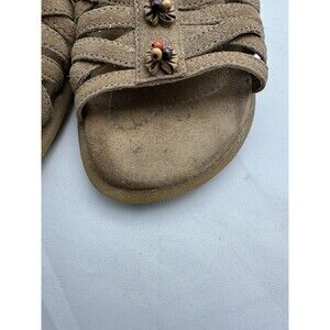 Earth Shoes Size 7 Brown Leather Wedge Sandal Gelron 2000 Flaws