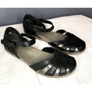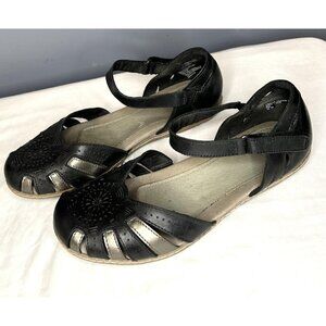 Earth Shoes Womens 9 Wide Black Leather Camellia Mary Jane Ankle Strap Flats