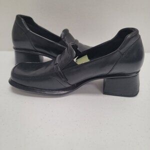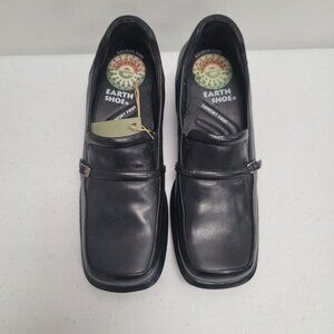 Earth Shoes Womens Chunky Pilgrim Loafer Heels Size 8.5 Black Square Toe Comfort