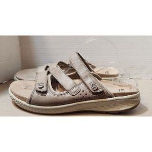 Earth Shoes Women's Sz 11M Mira Loures Taupe Tan Leather Strappy Slide Sandals. Great used condition see photos. Smoke free home. Check out my other items I will combine shipping