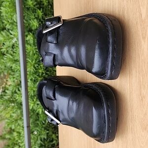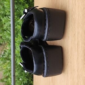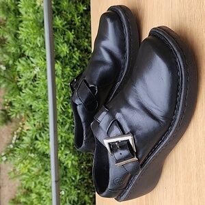 Stylish black leather slip-on shoes featuring a bold buckle design. Perfect for casual wear. Slight wear please review pictures
