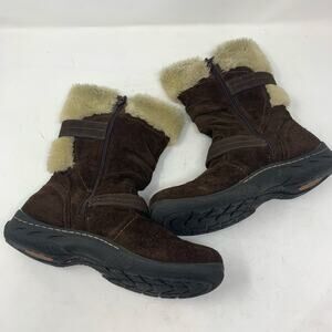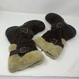 Earth Spirit Brigitte Mid Calf Winter Boot Brown Suede Faux Fur Trim Size 9 Warm