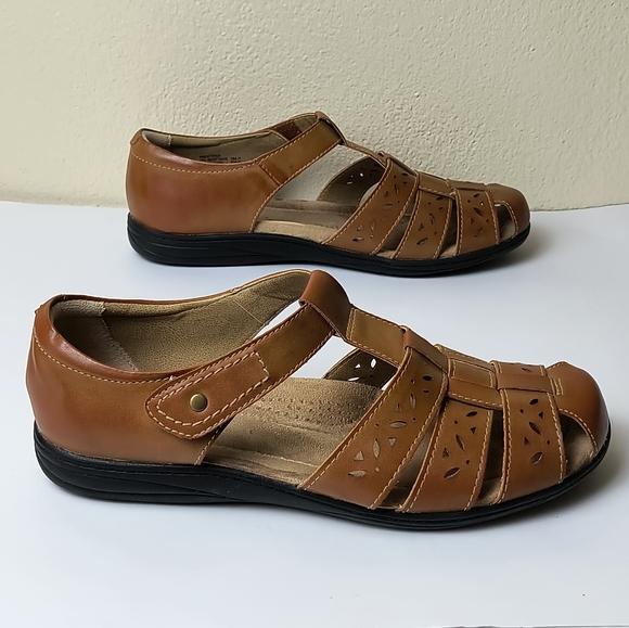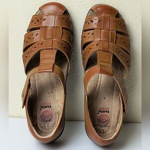 Earth Spirit Brown Flats Fisherman Women's Size 11 Preppy Casual Hoop & Loop