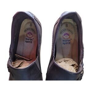 Earth Spirit Slip on flats made of faux leather upper and all man made material elsewhere. 1" heel. Decorative stitching and in excellent condition! The pictures dont do them justice. No scuffs or scratches. Super comfortable cushioned insoles. Size 8.