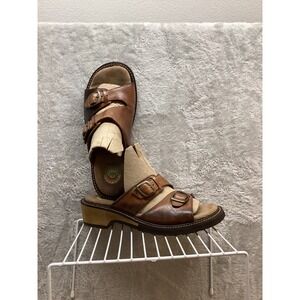 Earth Spirit Leather Buckle Slide Sandals Women Size 6 Brown Comfort Wedge