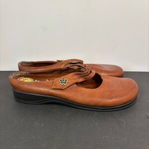 Earth Spirit Leather Mary Jane Flats Women’s 10 Brown Comfort Walking Shoes