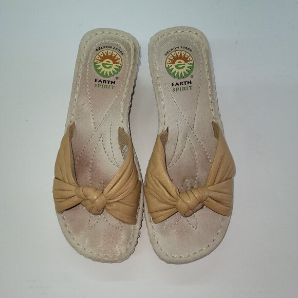 Earth Spirit Shoe Womens Size 7 Liberty Sandal Tan Leather Knot 2.5" Heel