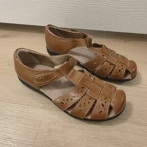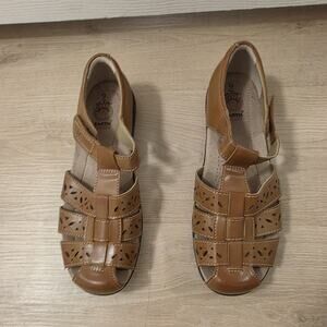 Earth Spirit Tan Cushioned Gelcrow Outdoor Granola Girl Fisherman Sandals Size 9
