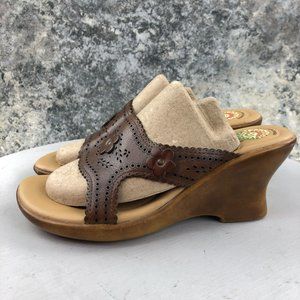 Earth Spirit Women's Size 8 Gelron 2000 Brown Open Toe Slip On Wedges Sandals