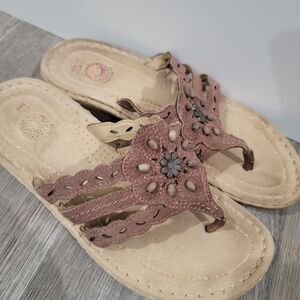 Earth Spirit Womens Wedge Sandals Size 9.5 Leather Boho Indi Hippie Festival