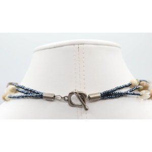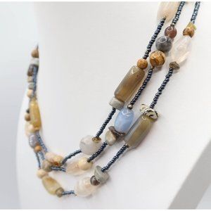 Earth Tone Acrylic & Natural Stone Seed Bead Multi Strand Toggle Necklace 18.5"