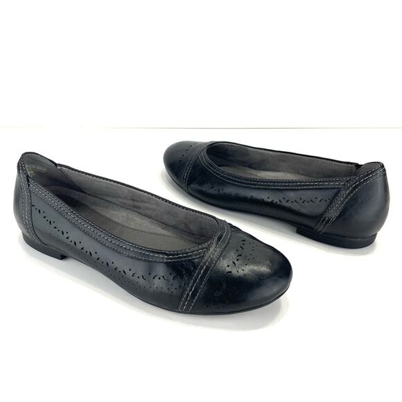 Earth Vista Nova Ballet Flat Shoes Size 10 Black Perforated Leather Breathable