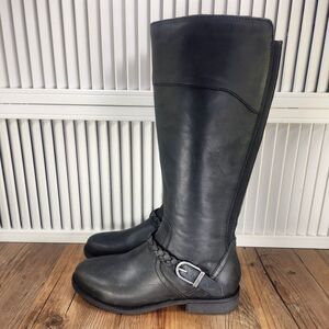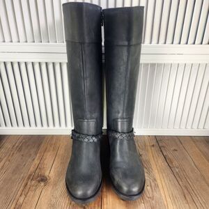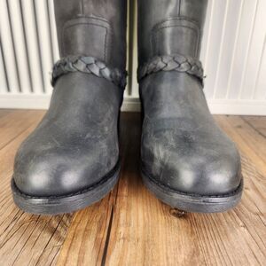 Chic charcoal boots with braided strap and buckle. Ideal for any occasion.
