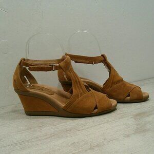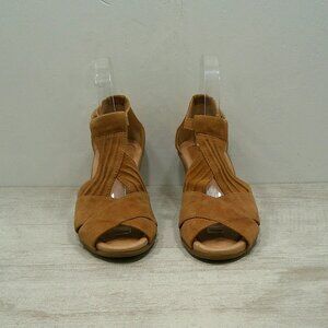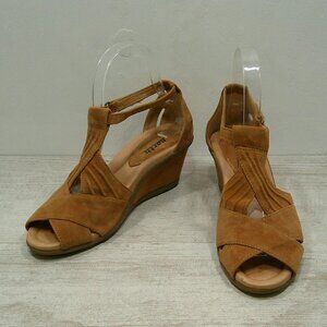 Earth Women's Curvet Biscuit Wedge Leather Peep Toe Sandals Size 6.5 B