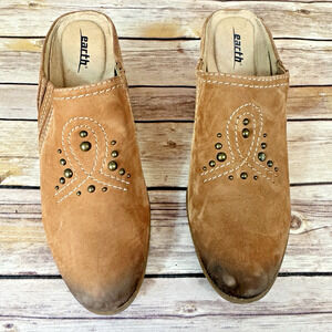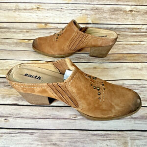 Earth Womens Sand Brown Leather Mando Studded Western Slip On Mule Shoes 8.5B