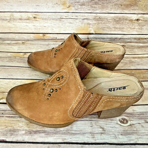 NWOB Earth Womens Sand Brown Leather Mando Studded Western Slip On Mule Shoes